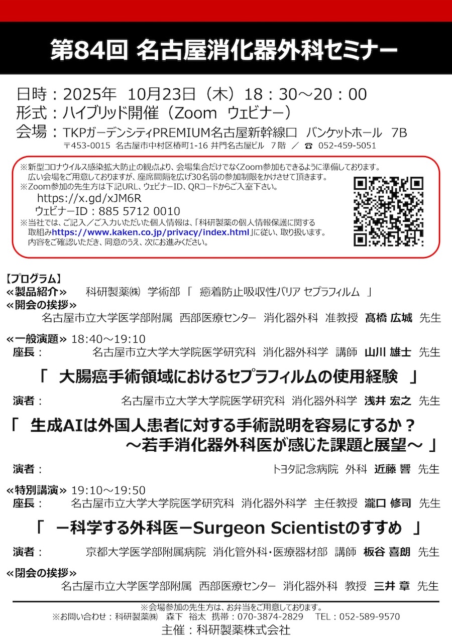 板谷喜朗先生が「名古屋消化器外科セミナー」(2025/10/23)に登壇しました